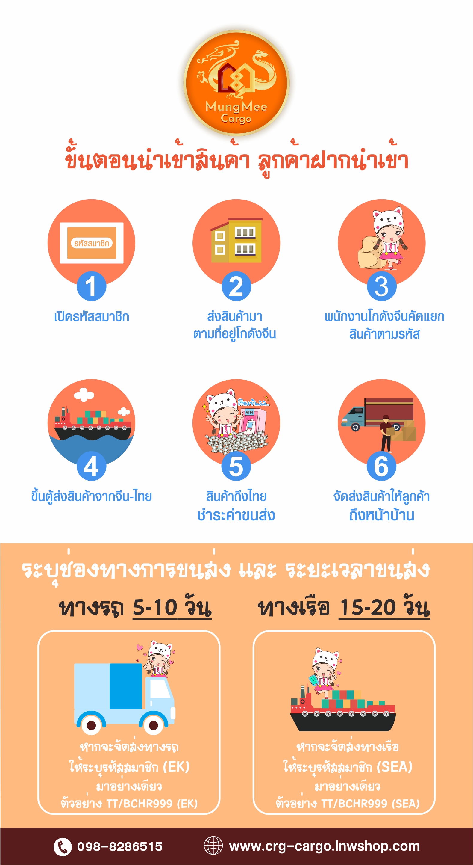 Mungmee Cargo รับนำเข้าสินค้าจากจีน ทุกประเภท ฝากสั่ง โอนชำระ ครบวงจร